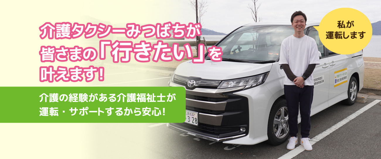 呉市周辺で安全・安心な介護タクシーをご利用するなら介護タクシーみつばちへ、ぜひお問い合わせください。